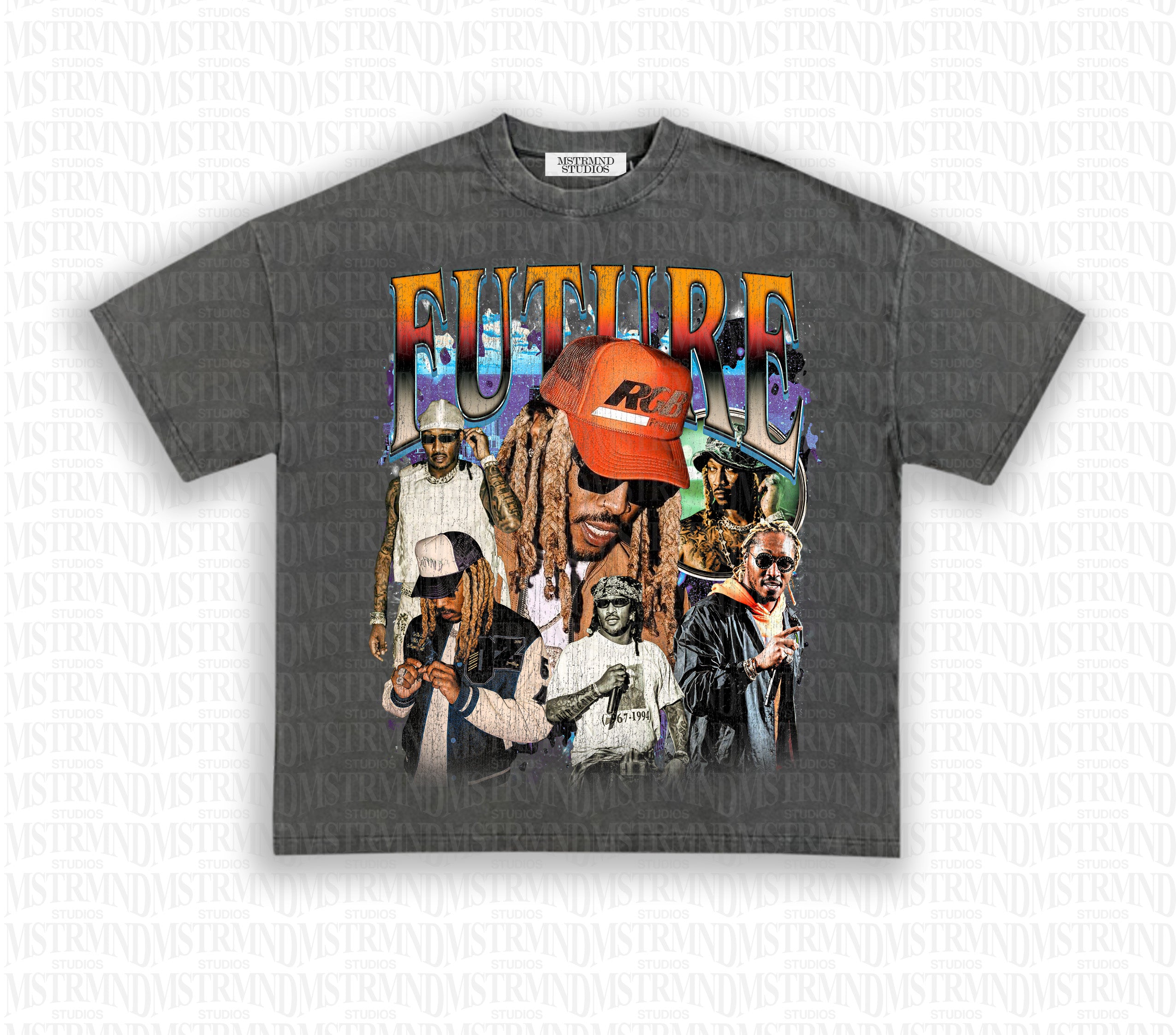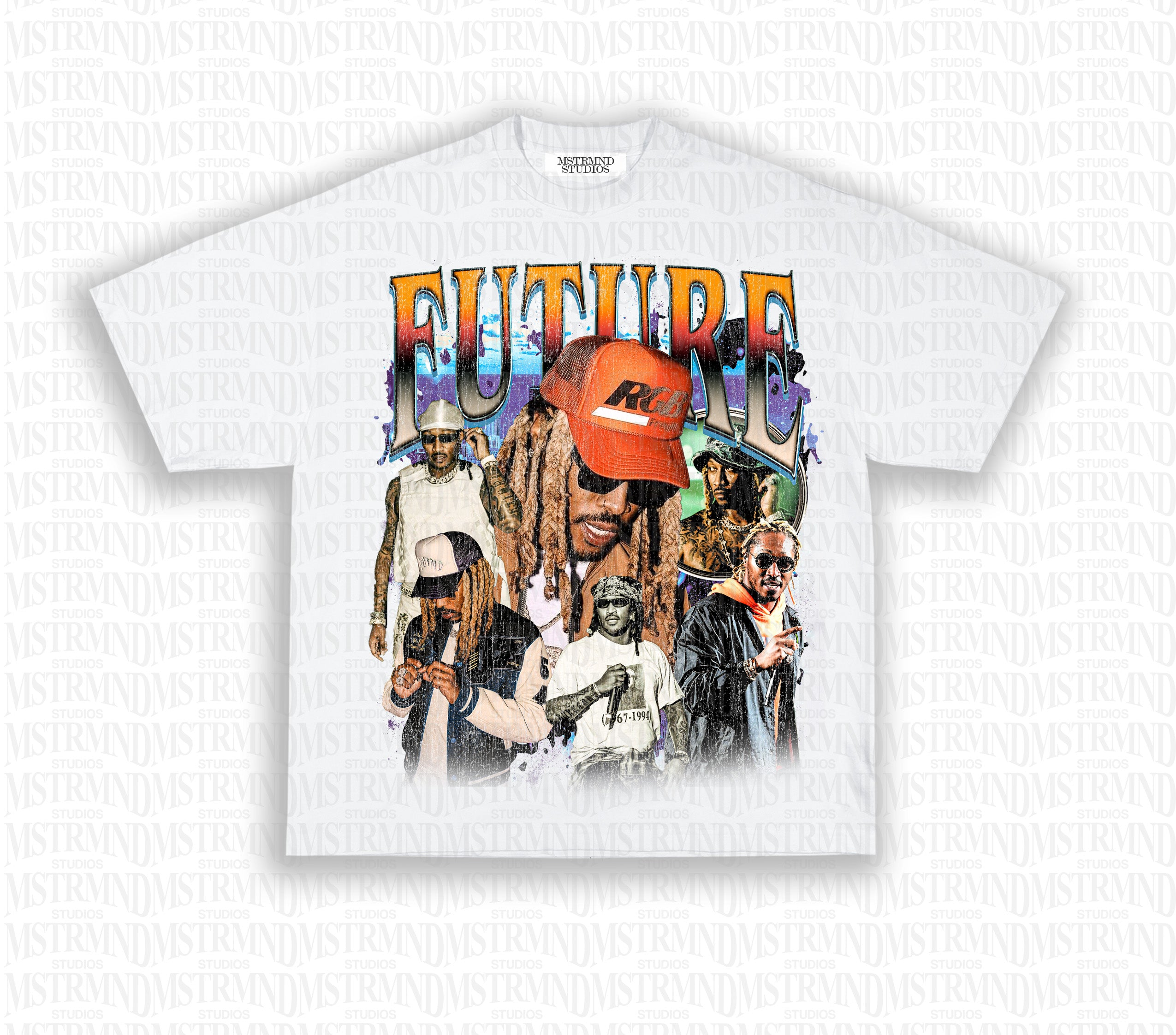 - Distressed print for aged look