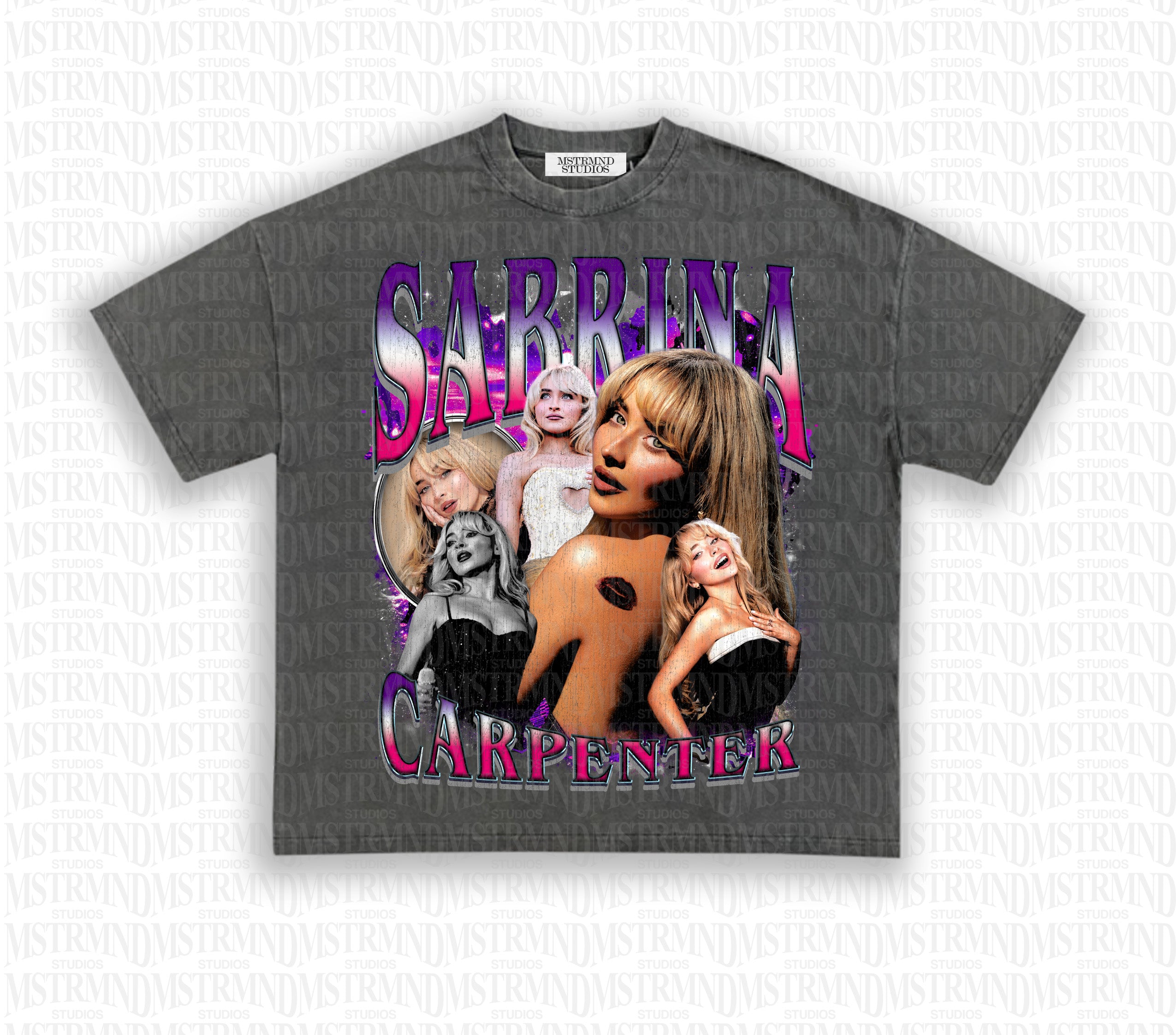 • Distressed print for aged look